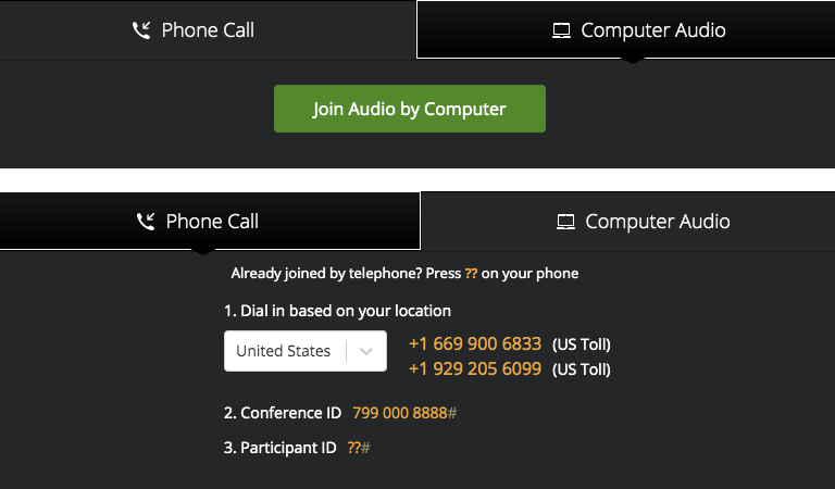 You will be presented with the option to join audio online or dial in: